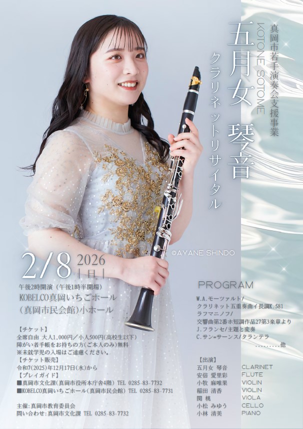 【2月8日(日曜日)】真岡市若手演奏家支援事業 「五月女琴音 クラリネットリサイタル」