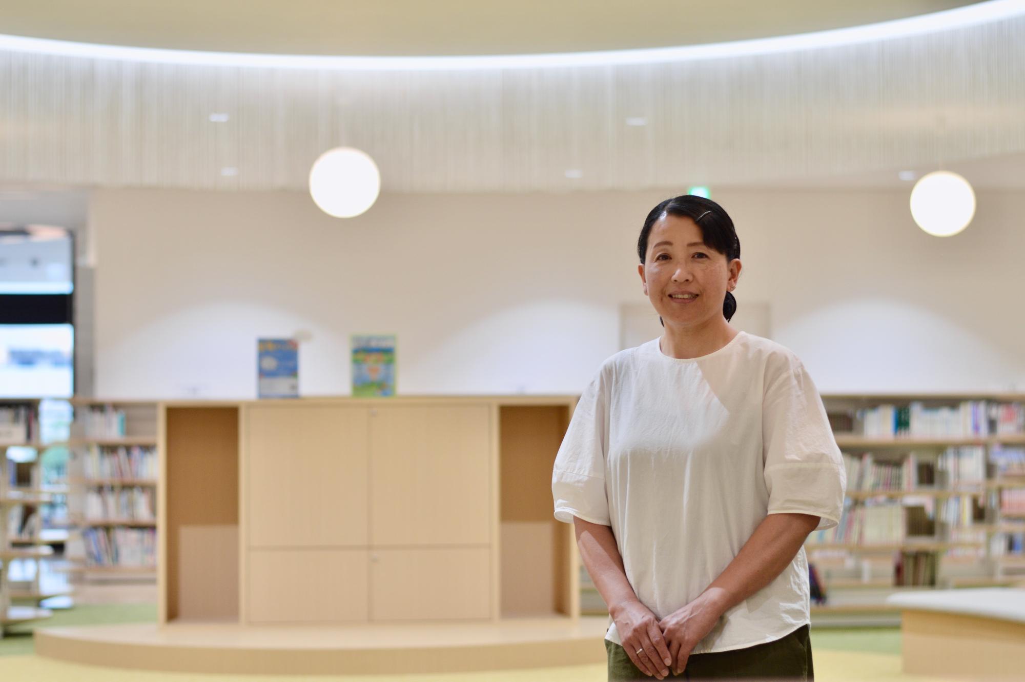 宇都宮市出身。結婚を機に真岡市へ。特別支援学校の教師として勤務するかたわら、小中学校の読み聞かせボランティア活動を長年続けてきた。2023年、任意団体「明日の図書館を考える会」を設立。社会教育士。