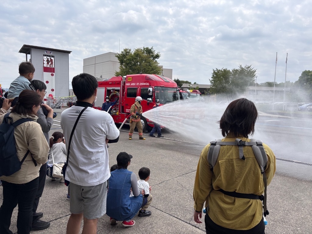 消防車や救急車の見学や、はしご車体験、最後には放水も見せてもらいました!子どもだけでなく、保護者の方も一緒に楽しく見学することができました。