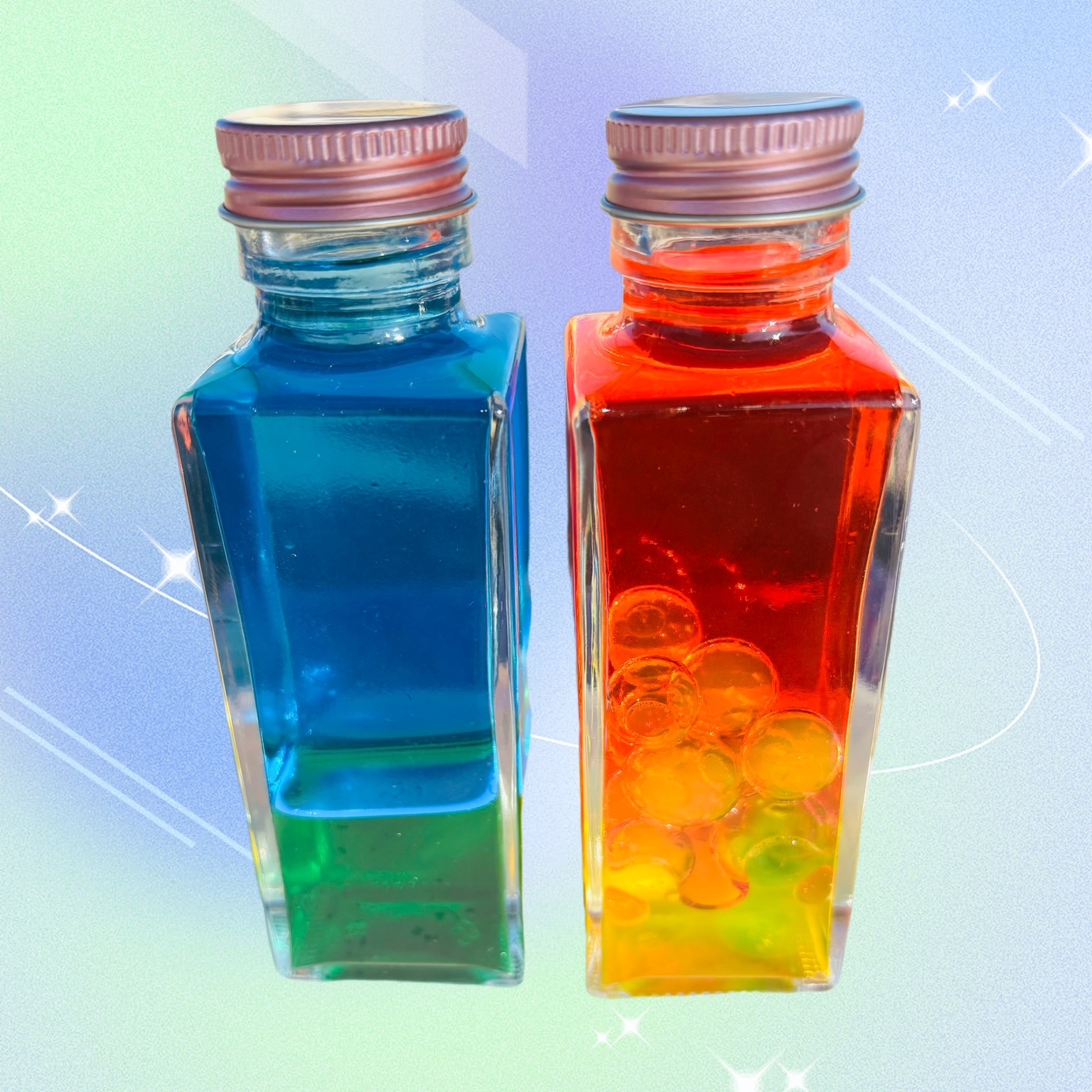 二層に分かれた不思議なボトルを作りましょう。科学者になれるかも?